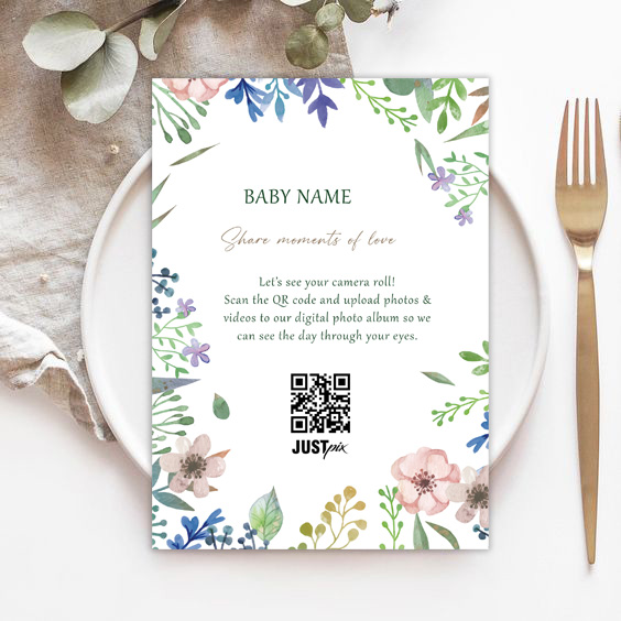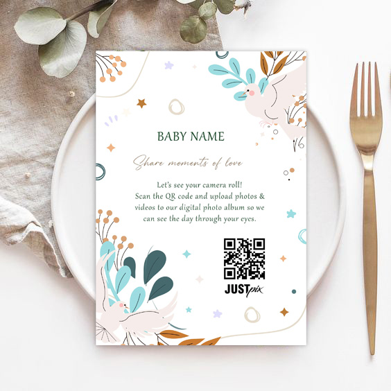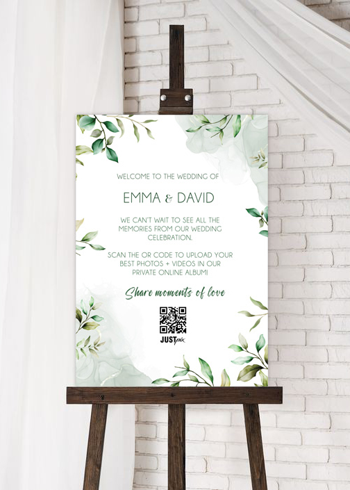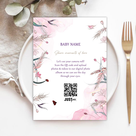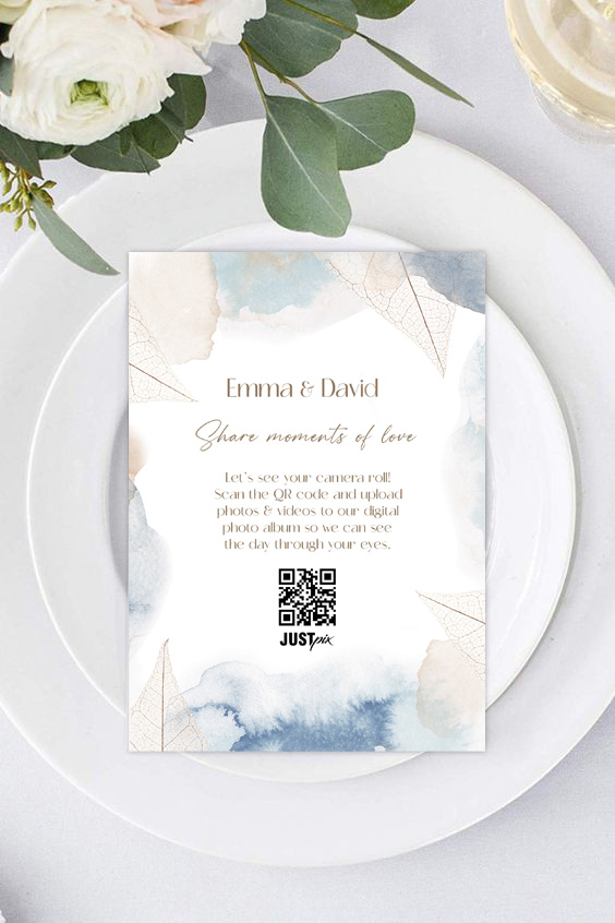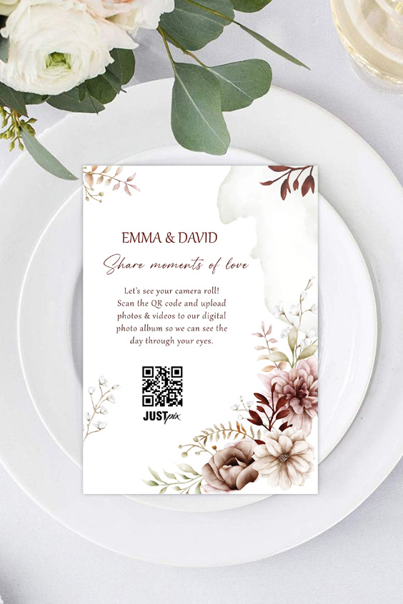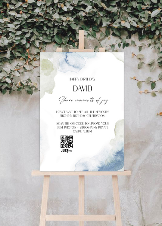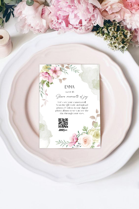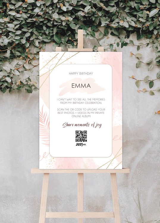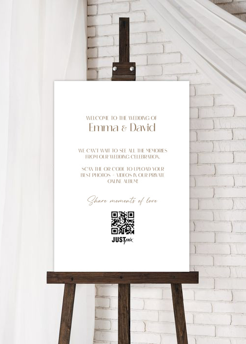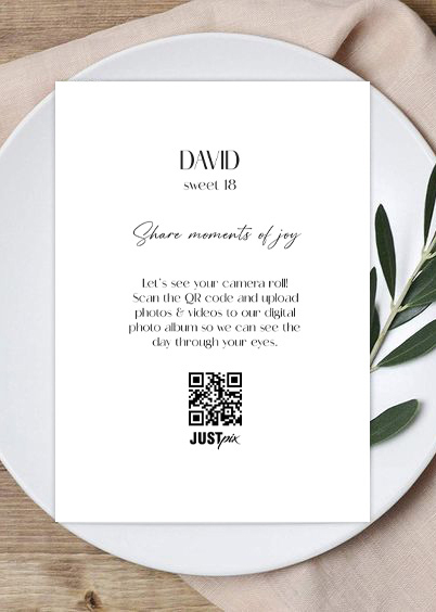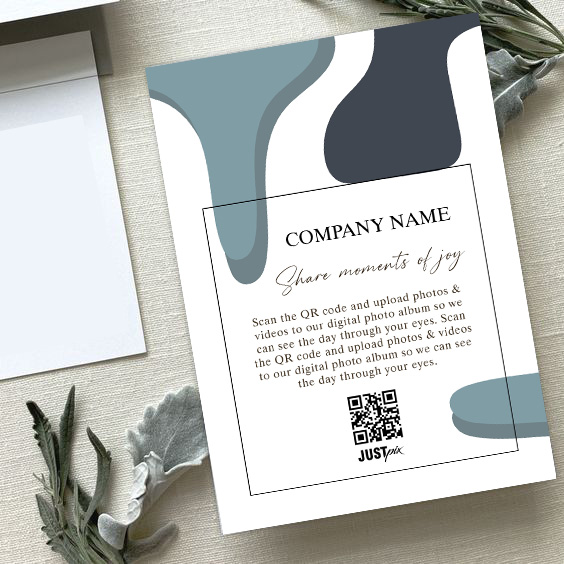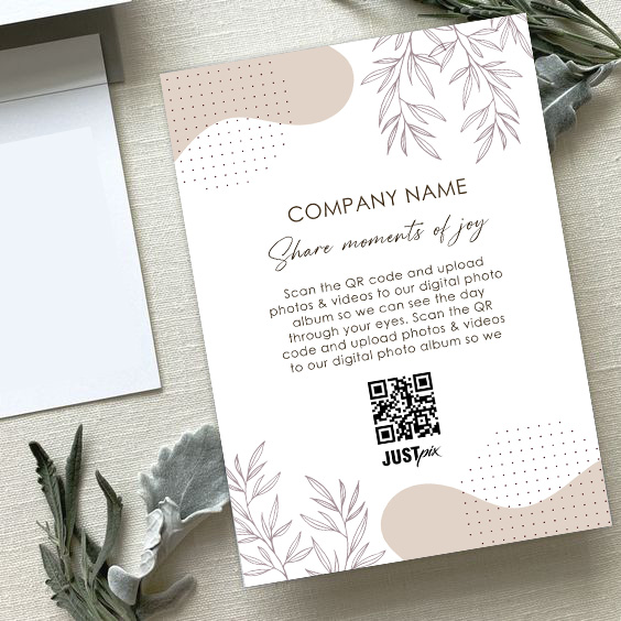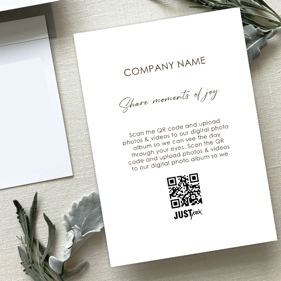 Comunicarea codului QR se poate face atât pe rețelele de socializare, cât și prin intermediul materialelor printabile pe care ți le punem la dispoziție pe platforma JustPix, și pe care le poți distribui sau plasa oriunde dorești la începutul evenimentului tău.